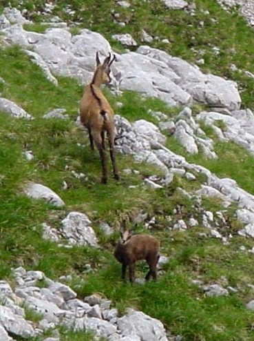 Eine Gamsmutter mit ihrem Kind